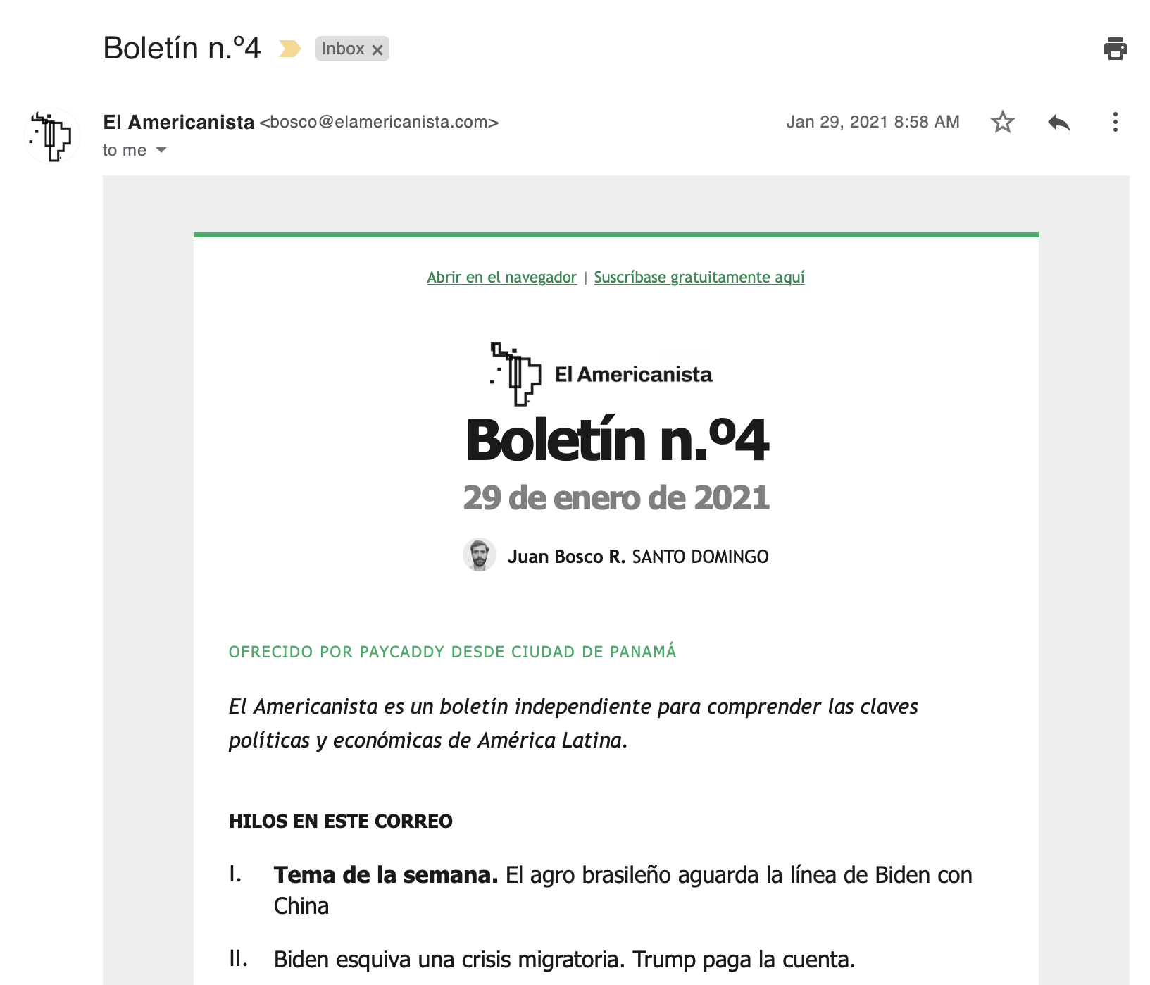 El Americanista es un boletín gratuito sufragado por patrocinadores.